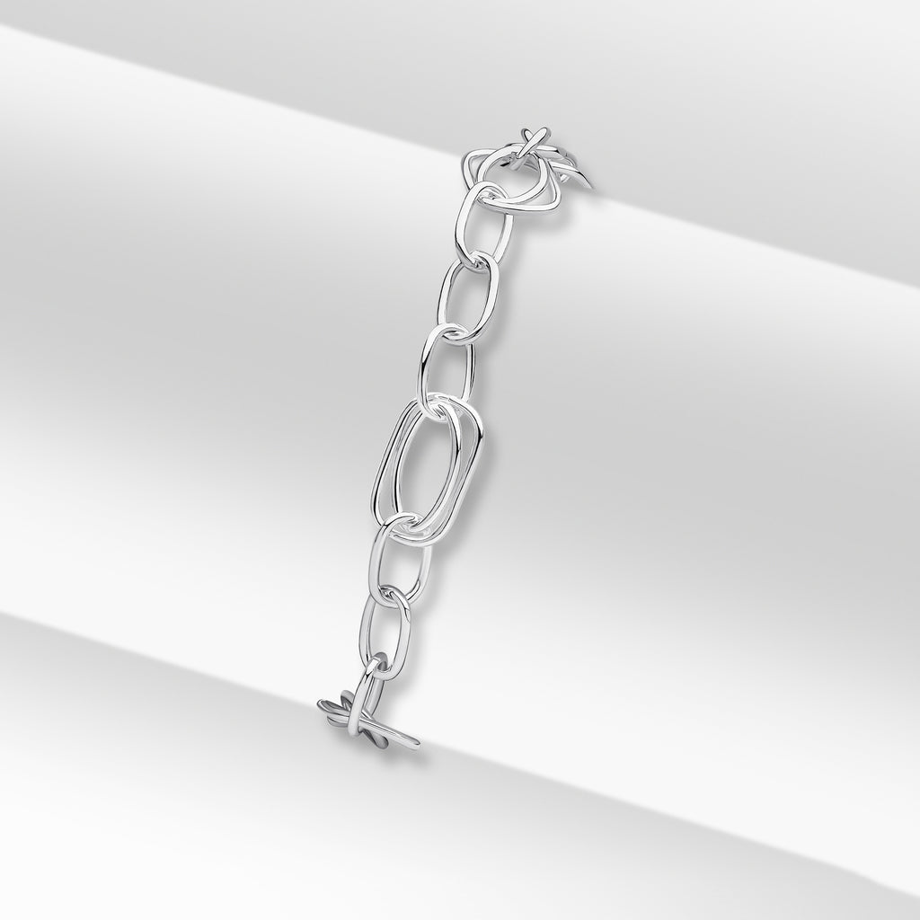 Silver Handmade Fancy Multi Link Square Chain Bracelet 7.5"