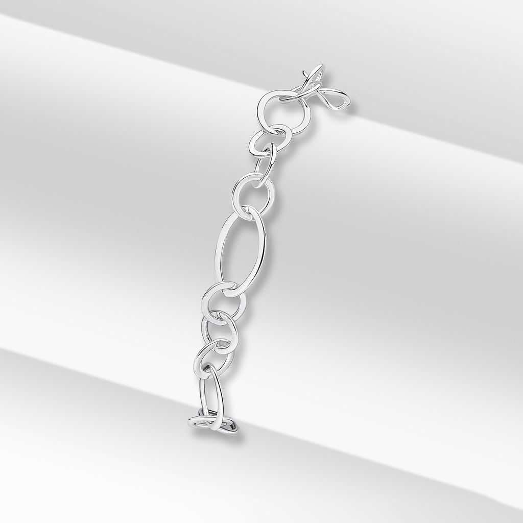 Silver Handmade Flat Oval & Round Chain Bracelet 7.5"