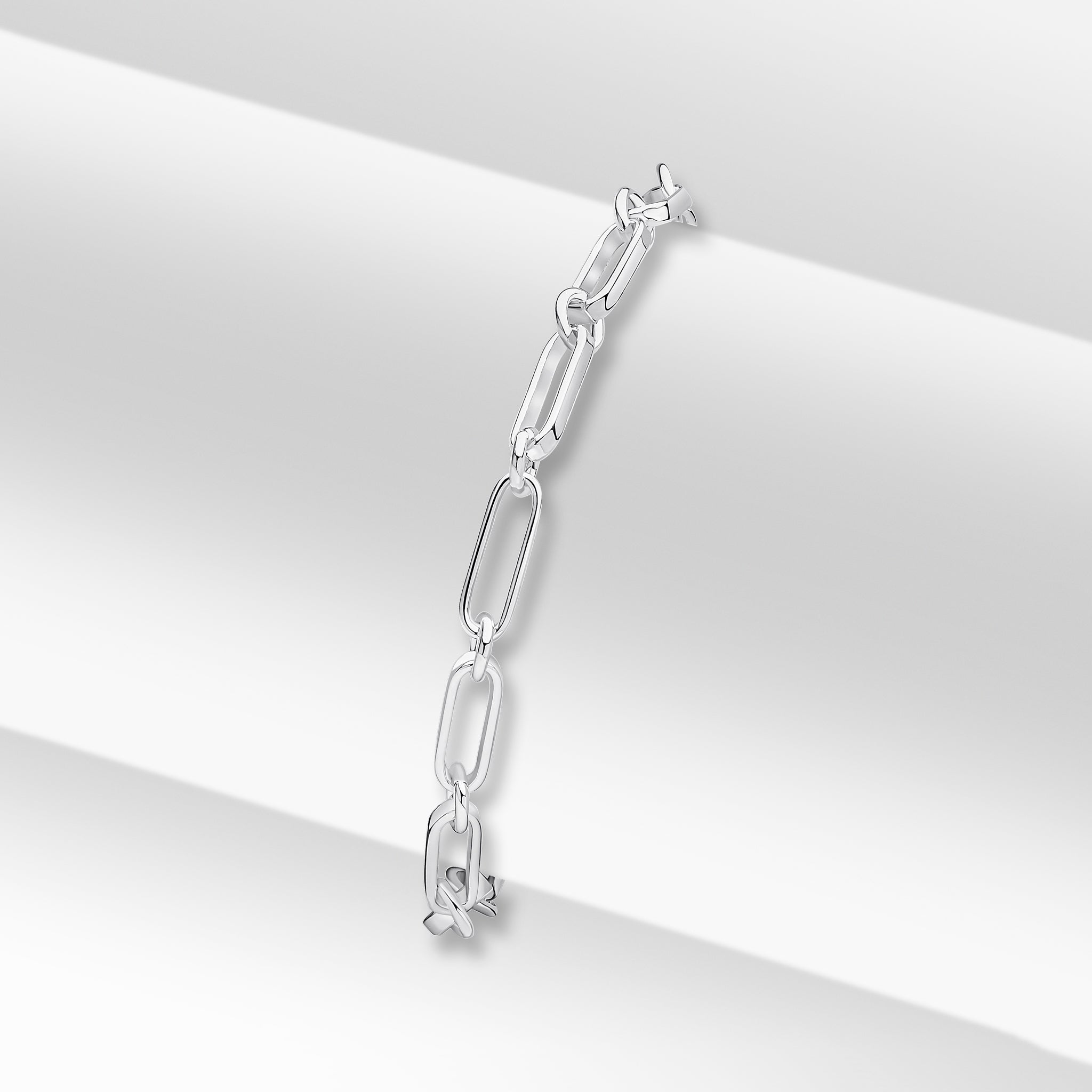 Silver Handmade Flat Paperclip Chain Bracelet 7.5"