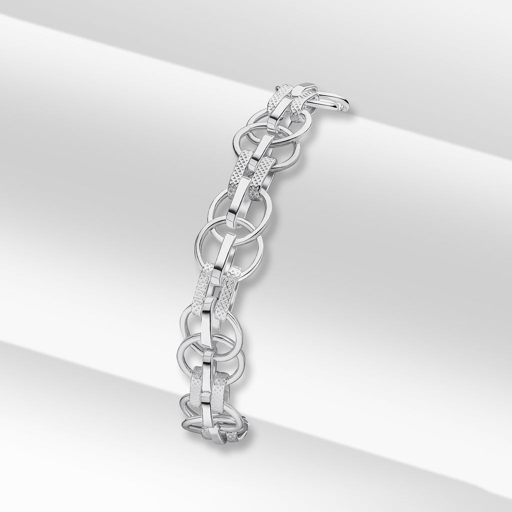 Silver Handmade Polished and Textured Multi Link Chain Bracelet 7.5"