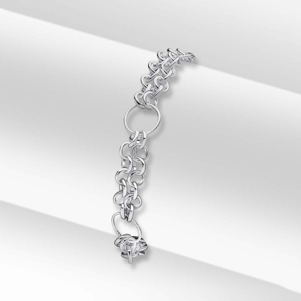 Silver Handmade Oval and Round Gate Chain Bracelet 7.5"