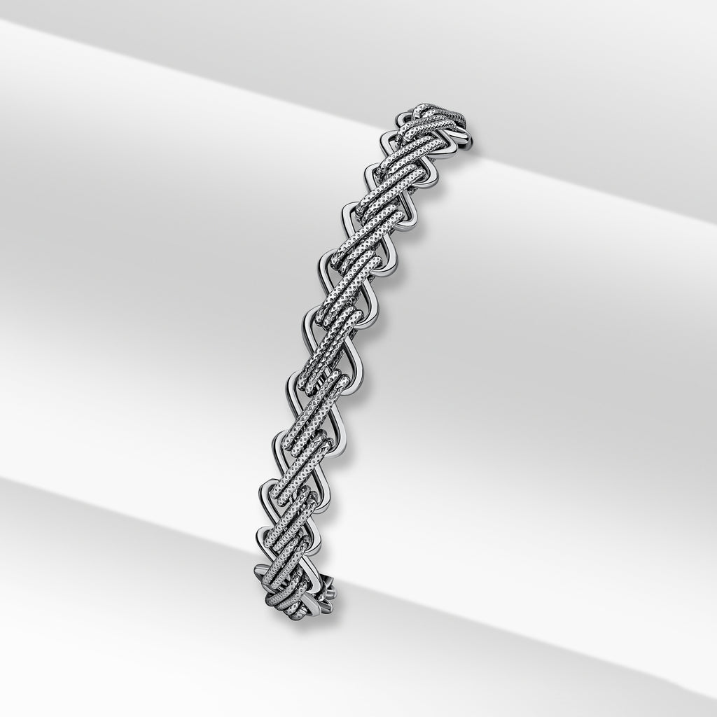 Silver Handmade Textured Antique Finish Herringbone Style Chain Bracelet 7.5"